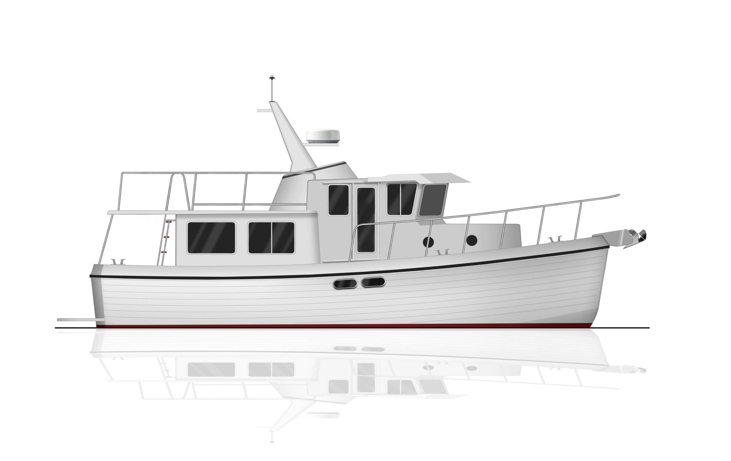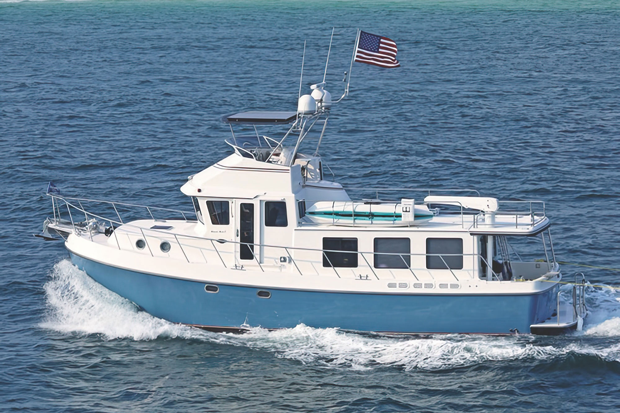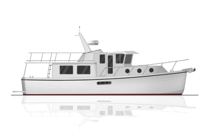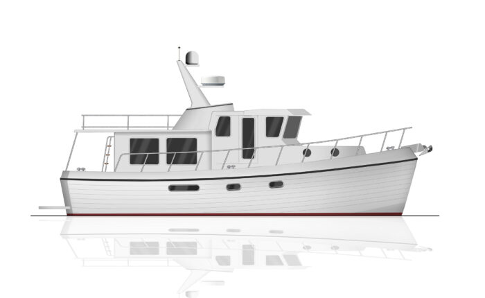 The American Tug semi-displacement hull design is based on Lynn Senour’s commercial vessels where speed, efficiency, and ride were equally important. The result is the ideal coastal cruiser.