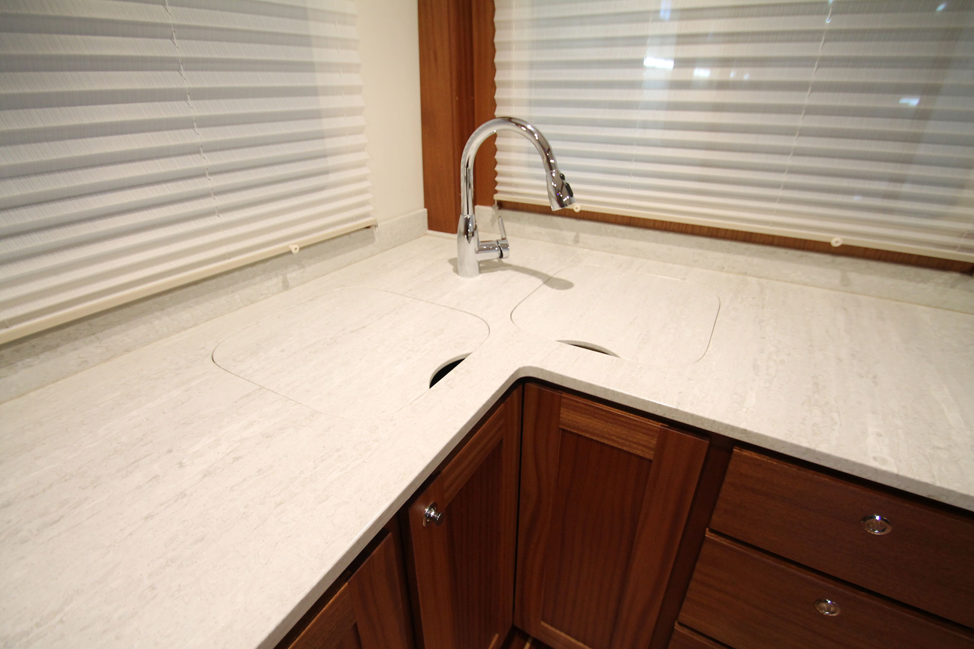 • Galley Functionality: A true liveaboard boat needs a fully equipped galley not only for functionality, but prepping big meals for friends and family is part of the adventure. American Tug’s models feature household-sized appliances, deep sinks, solid countertops, and plenty of workspace, making onboard meal preparation easy.