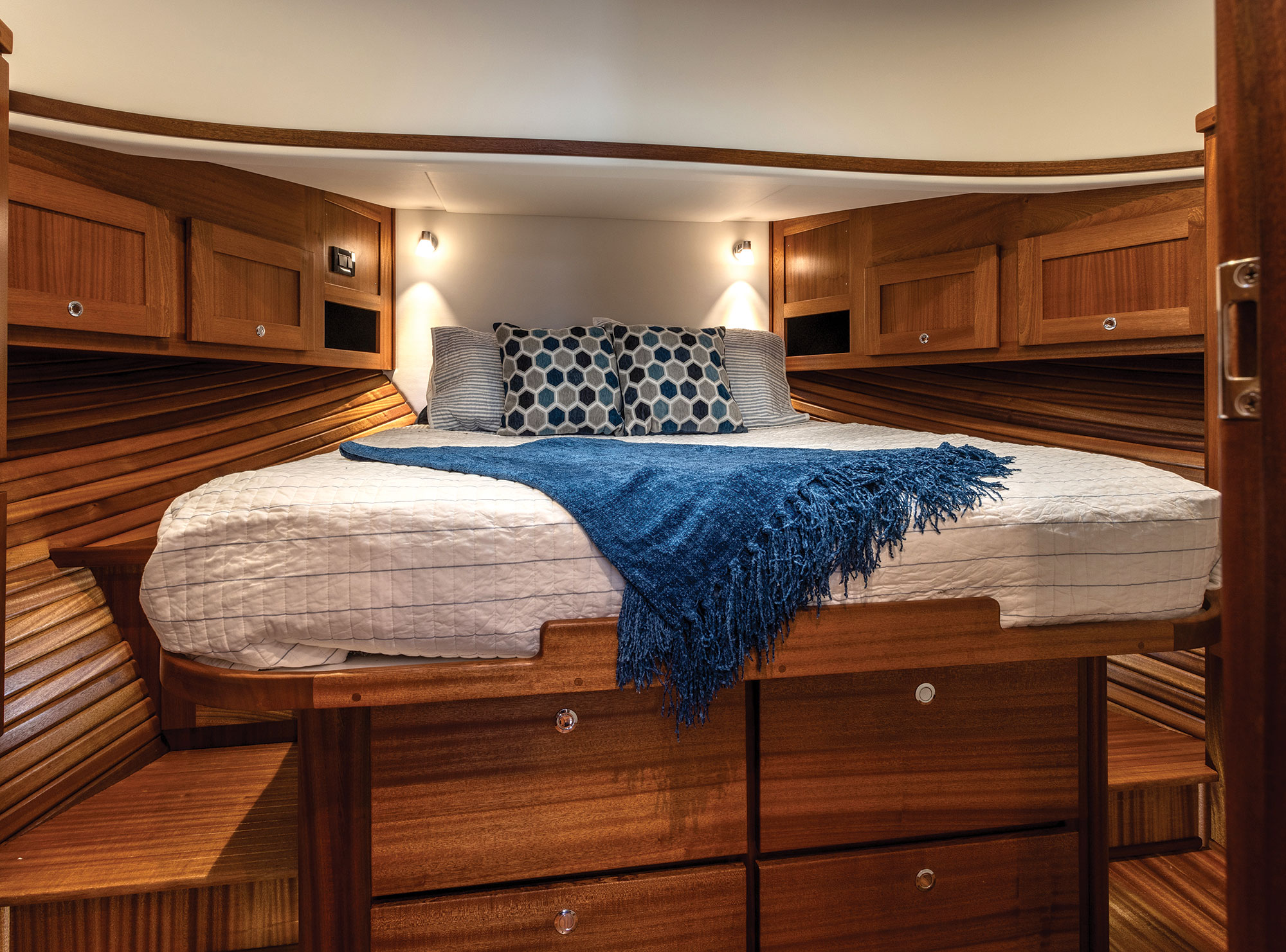 • Comfortable Sleeping Accommodations: Designed for extended stays, American Tug’s private staterooms feature large, well-appointed berths with high-quality mattresses, ensuring a restful night’s sleep.
