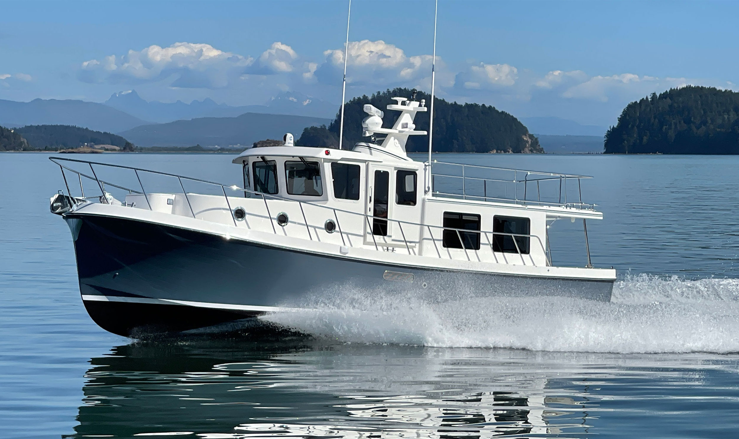 The American Tug semi-displacement hull design is based on Lynn Senour’s commercial vessels where speed, efficiency, and ride were equally important. The result is an ideal coastal cruising platform that provides owners with liveaboard-ready accommodations.